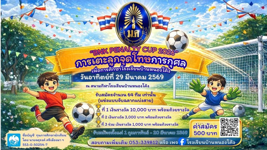 ขอเชิญสมัครเข้าร่วมการเตะลูกจุดโทษการกุศล เพื่อสนับสนุนการศึกษาโรงเรียนบ้านหนองโค้ง ในวันอาทิตย์ที่ ..