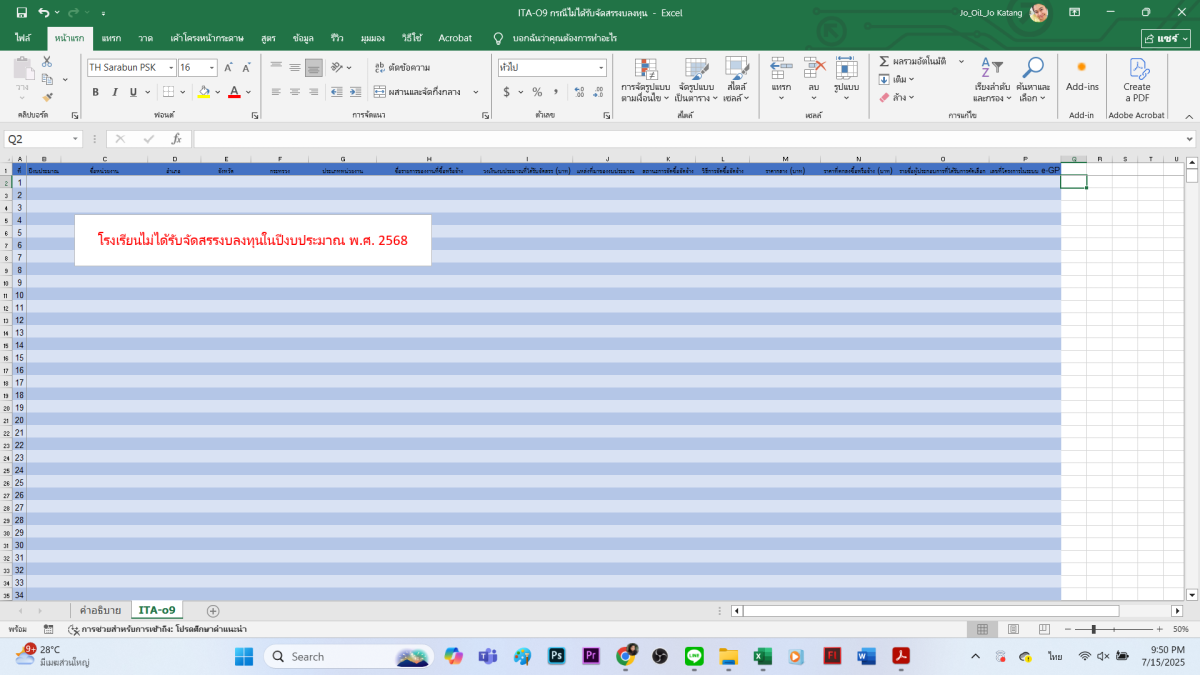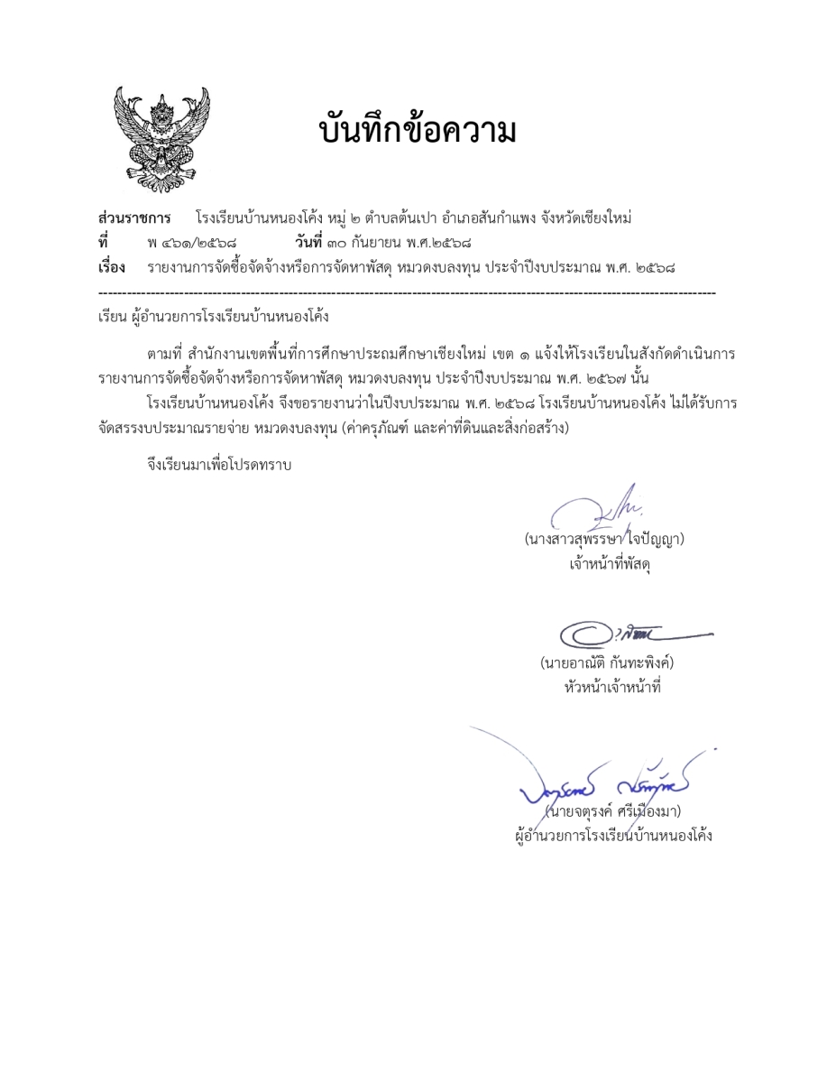 บันทึกข้อความรายงานงบลงทุน 2568