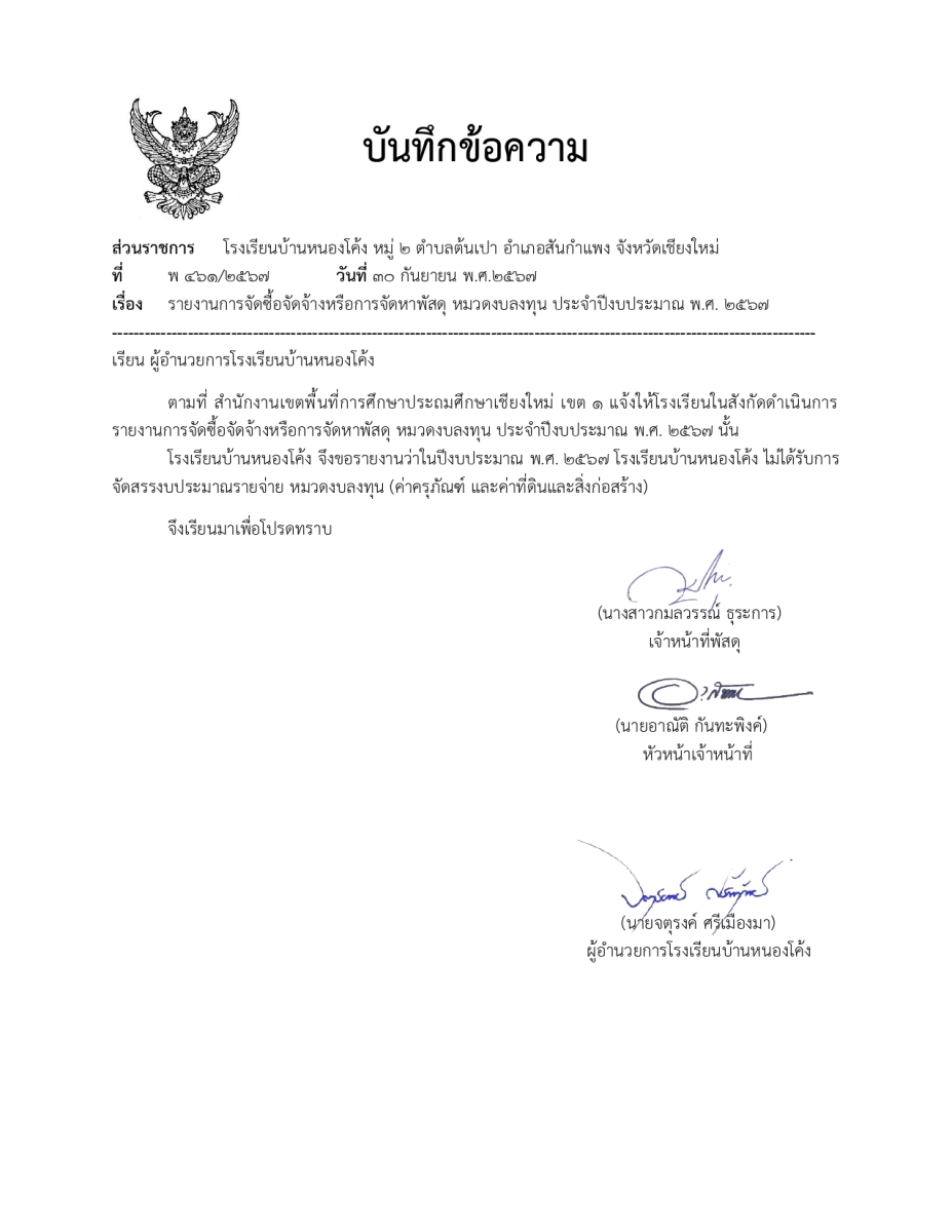 บันทึกข้อความรายงานงบลงทุน 2567 ดาวน์โหลดไฟล์