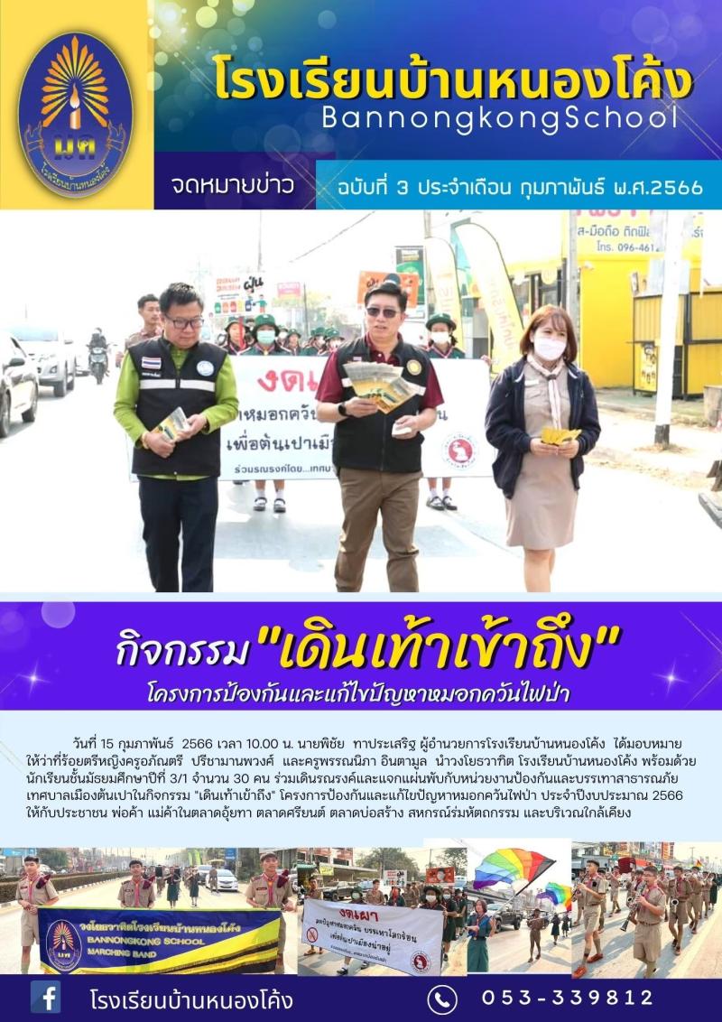 นักเรียนม.3/1 ร่วมเดินรณรงค์และแจกแผ่นพับ เพื่อให้ความรู้เรื่องการป้องกันและแก้ไขปัญหาหมอกควันไฟป่า