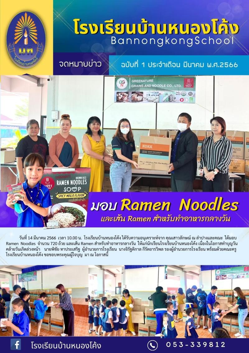คุณเสาวลักษณ์ ณ ลำปางและคณะ บริจาค Ramen Noodles และเส้น Ramen สำหรับทำอาหารกลางวันนักเรียน