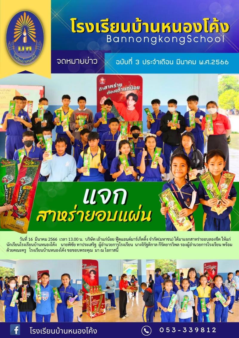 บริษัท เถ้าแก่น้อย ฟู๊ดแอนด์มาเก็ตติ้ง จำกัด(มหาชน) มอบสาหร่ายอบชีต "เถ้าแก่น้อย" ให้นักเรียน