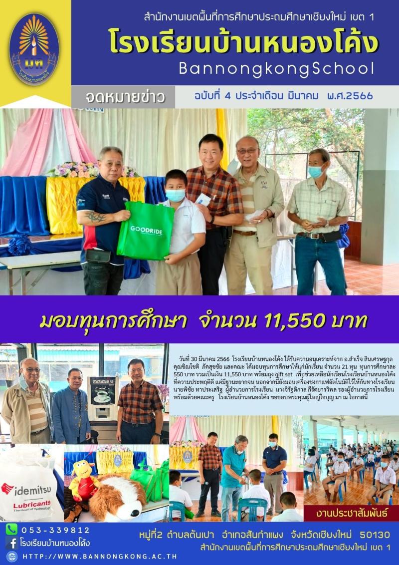 อ.สำเร็จ สินเศรฐกุล คุณชินโชติ ภัคสุขชัยและคณะ มอบทุนการศึกษา จำนวน 11,550 บาท