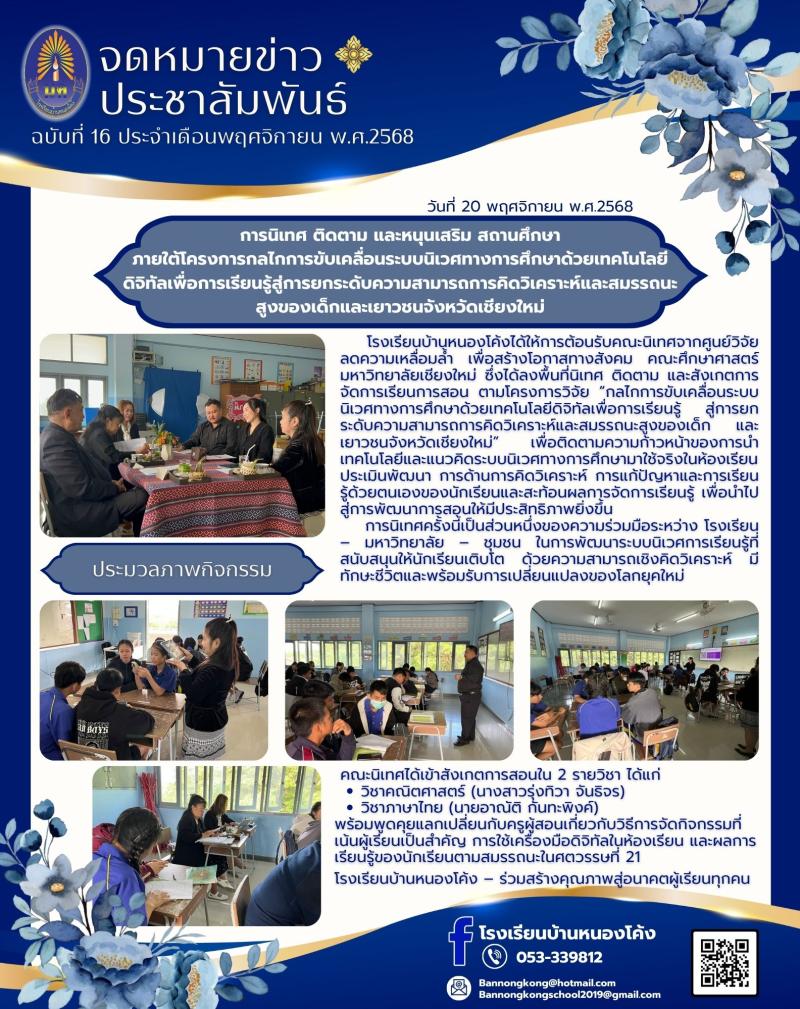 นิเทศติดตามการจัดการเรียนรู้เพื่อยกระดับสมรรถนะผู้เรียน