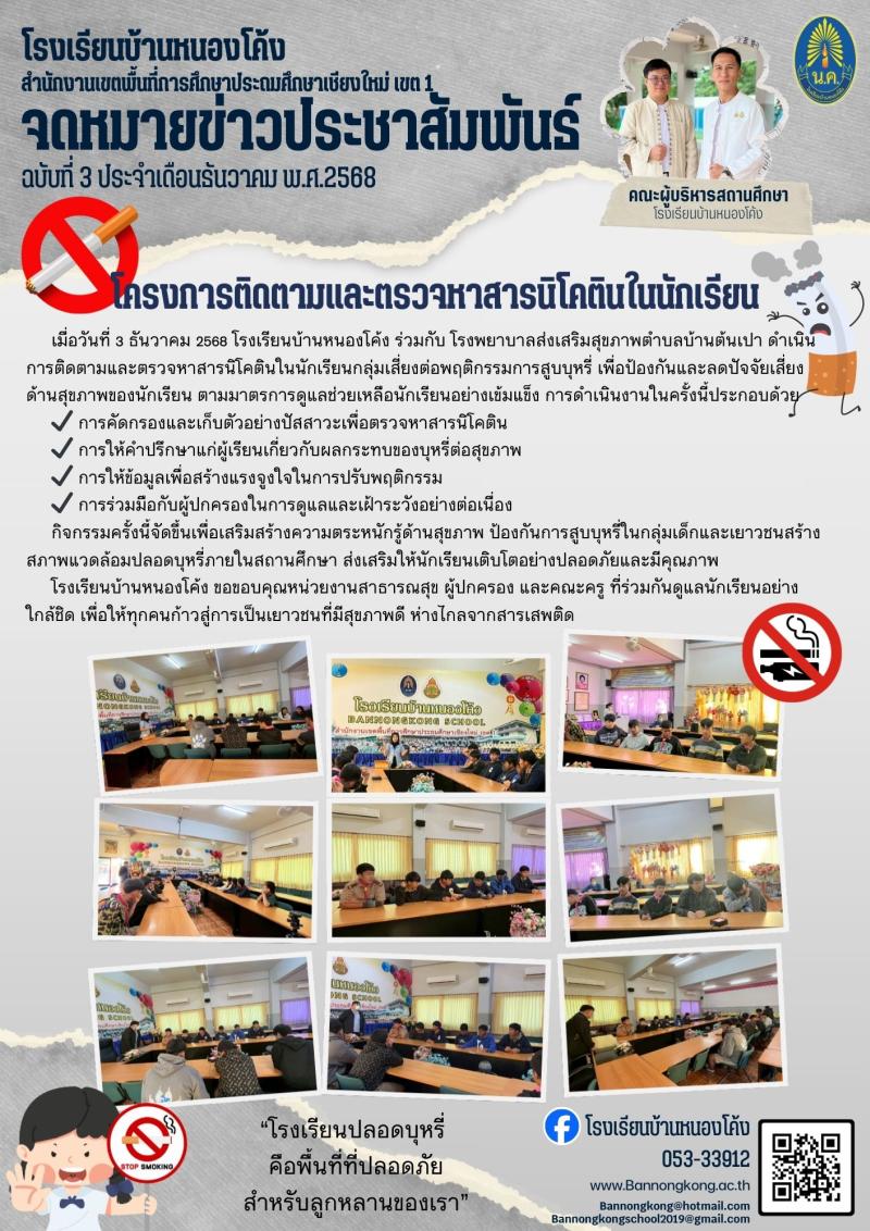 ติดตามและตรวจหาสารนิโคตินในนักเรียนกลุ่มเสี่ยง