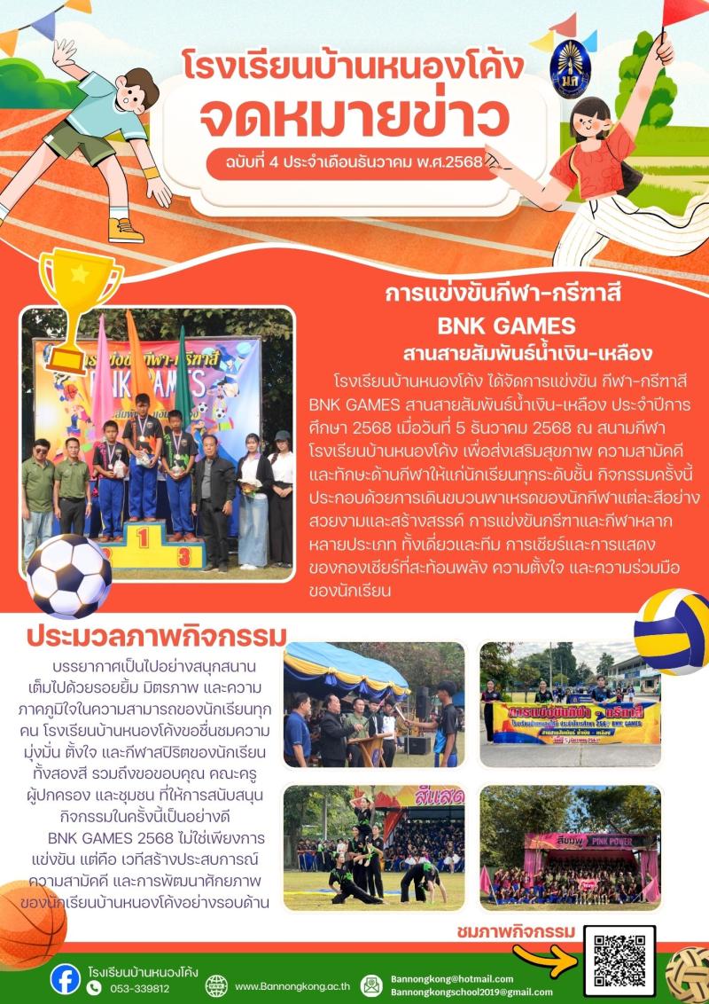 การแข่งขันกีฬา–กรีฑาสี BNK GAMES สานสายสัมพันธ์น้ำเงิน–เหลือง ปีการศึกษา 2568