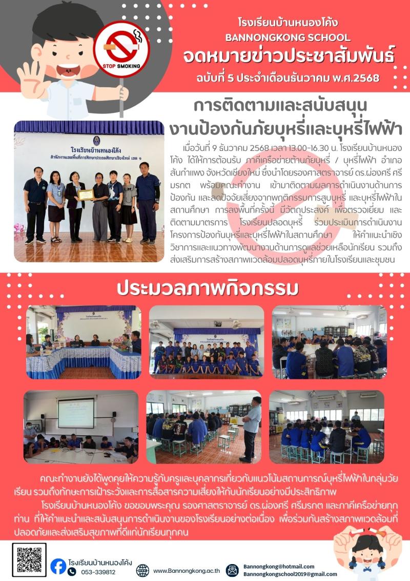 ภาคีเครือข่ายต้านภัยบุหรี่–บุหรี่ไฟฟ้า ลงพื้นที่ติดตามงานโรงเรียนบ้านหนองโค้ง