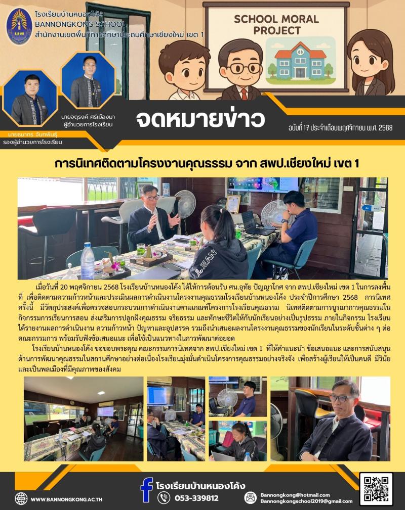 โรงเรียนบ้านหนองโค้ง เข้ารับการนิเทศ–ติดตาม โครงการระบบนิเวศทางการศึกษาดิจิทัล จังหวัดเชียงใหม่