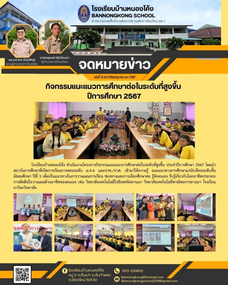 โรงเรียนบ้านหนองโค้ง ดำเนินงานโครงการกิจกรรมแนะแนวการศึกษาต่อในระดับที่สูงขึ้น ประจำปีการศึกษา 2567