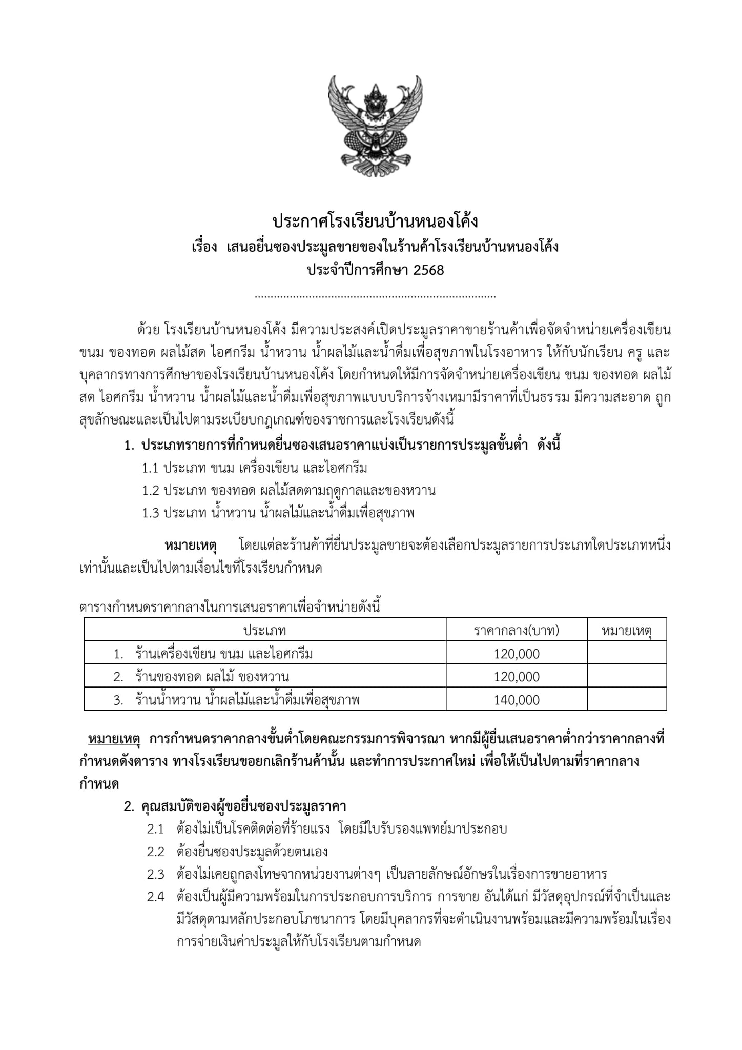 รับแบบฟอร์มใบประมูลราคา : วันที่ 3-27 มีนาคม 2568 เวลา 08.30-16.00 น. ณ ห้องธุรการโรงเรียน