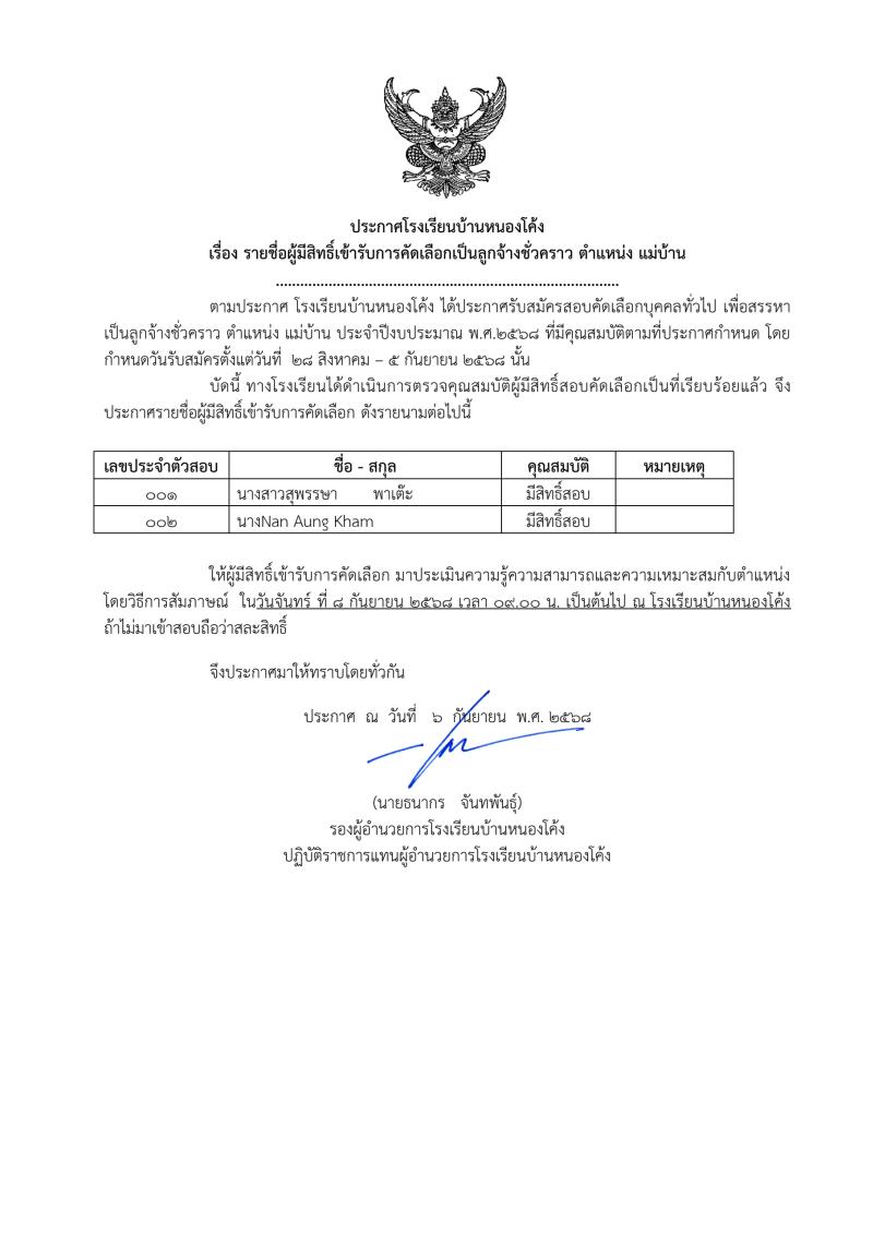 ขอให้มาประเมินความสามารถและความเหมาะสมกับตำแหน่งโดยวิธีการสัมภาษณ์ ในวันจันทร์ที่ 8 กันยายน 2568 เวล..