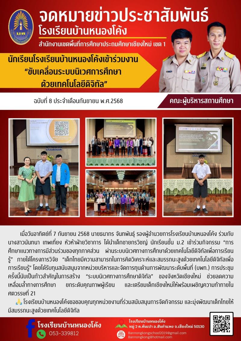 นักเรียนโรงเรียนบ้านหนองโค้งเข้าร่วมงาน “ขับเคลื่อนระบบนิเวศการศึกษา ด้วยเทคโนโลยีดิจิทัล”