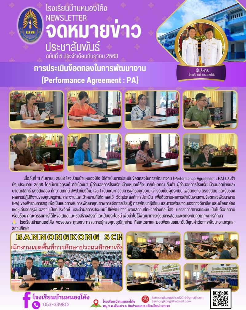 การประเมินข้อตกลงในการพัฒนางาน (Performance Agreement : PA) ปีงบประมาณ 2568