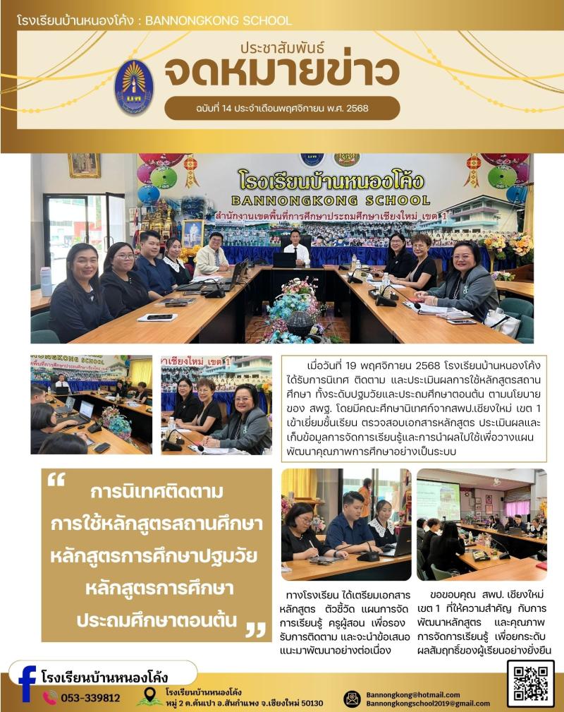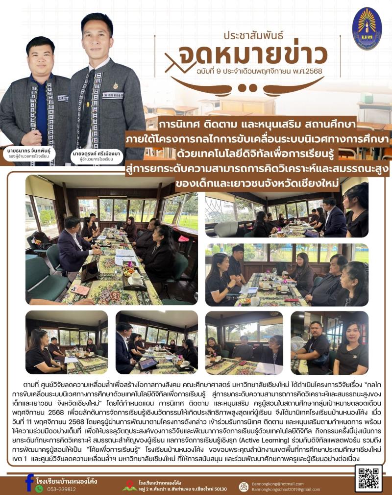โรงเรียนบ้านหนองโค้ง เข้ารับการนิเทศ–ติดตาม โครงการระบบนิเวศทางการศึกษาดิจิทัล จังหวัดเชียงใหม่