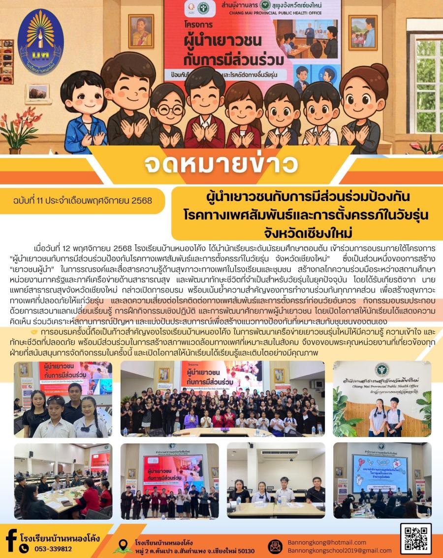นักเรียนเข้าร่วมโครงการ “ผู้นำเยาวชนกับการมีส่วนร่วมป้องกันโรคทางเพศสัมพันธ์และการตั้งครรภ์ในวัยรุ่น..