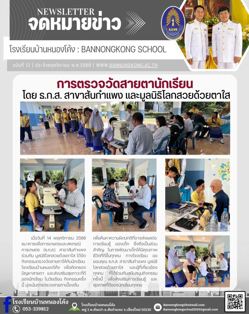 การตรวจวัดสายตานักเรียน โดย ธ.ก.ส. สาขาสันกำแพง และมูลนิธิโลกสวยด้วยตาใส
