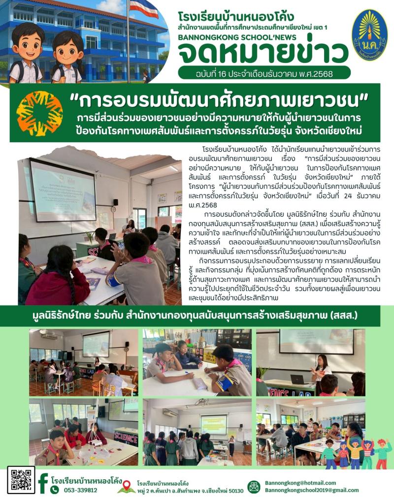 การอบรมพัฒนาศักยภาพเยาวชน เรื่อง “การมีส่วนร่วมของเยาวชนอย่างมีความหมายให้กับผู้นำเยาวชนในการป้องกัน..