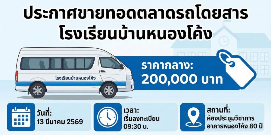 โรงเรียนบ้านหนองโค้งประกาศ ขายทอดตลาดครุภัณฑ์ที่ชำรุด เสื่อมสภาพ จำนวน 1 รายการ (รถโดยสารส่วนบุคคล) ..